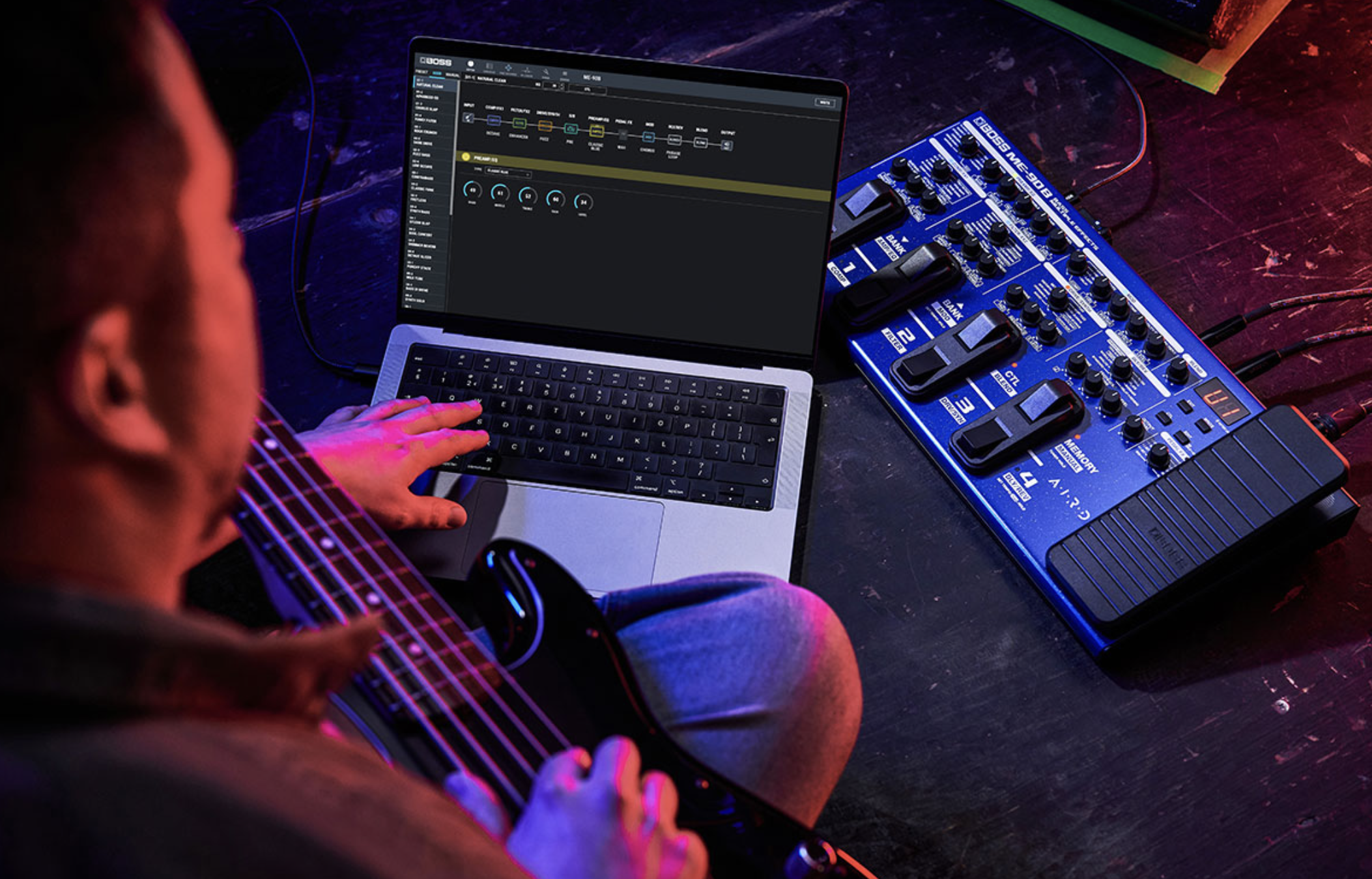 - 61 effects from the BOSS bass effects library