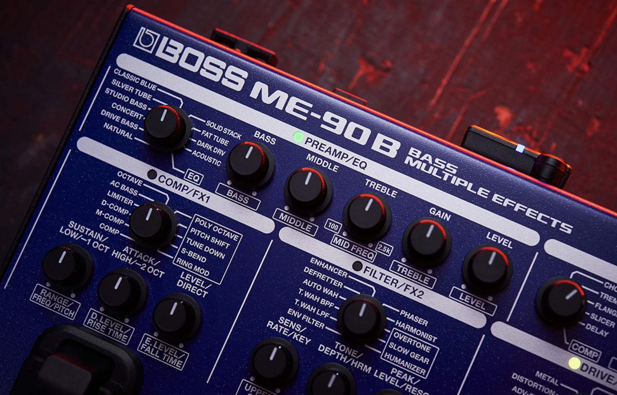 - Dedicated preamp section plus six simultaneous effect categories with multiple types to choose from