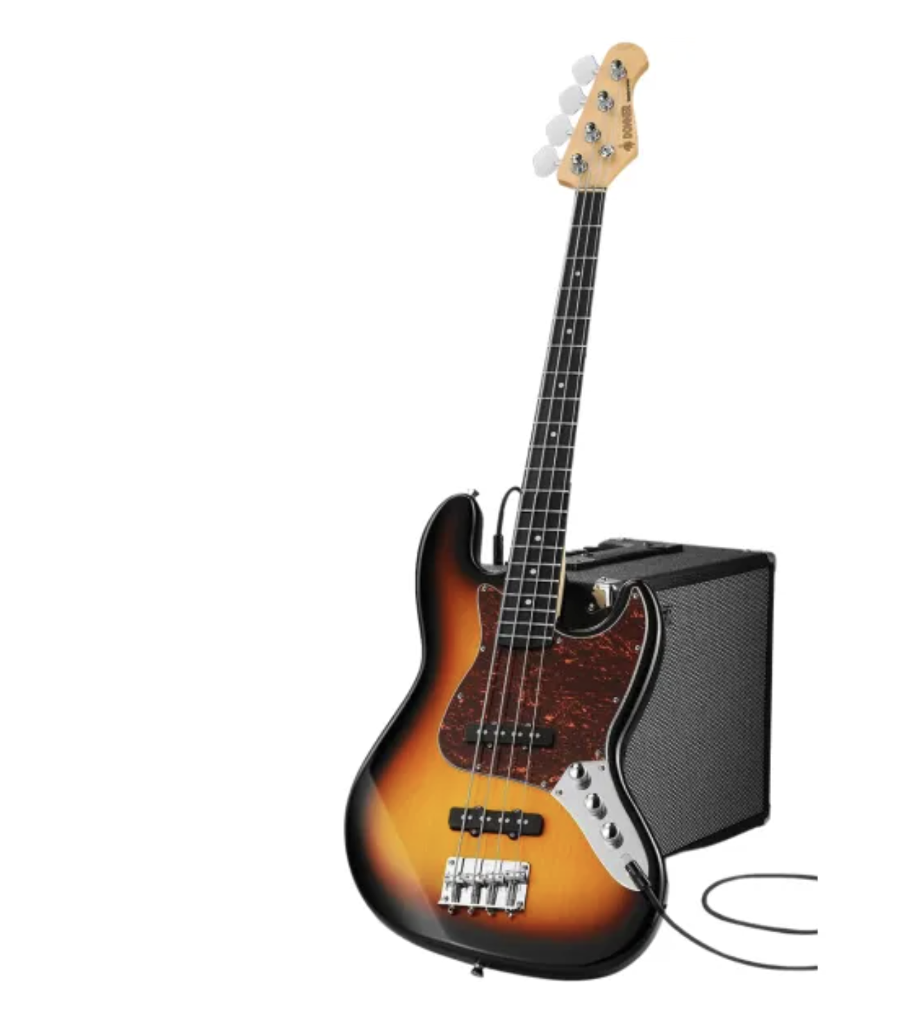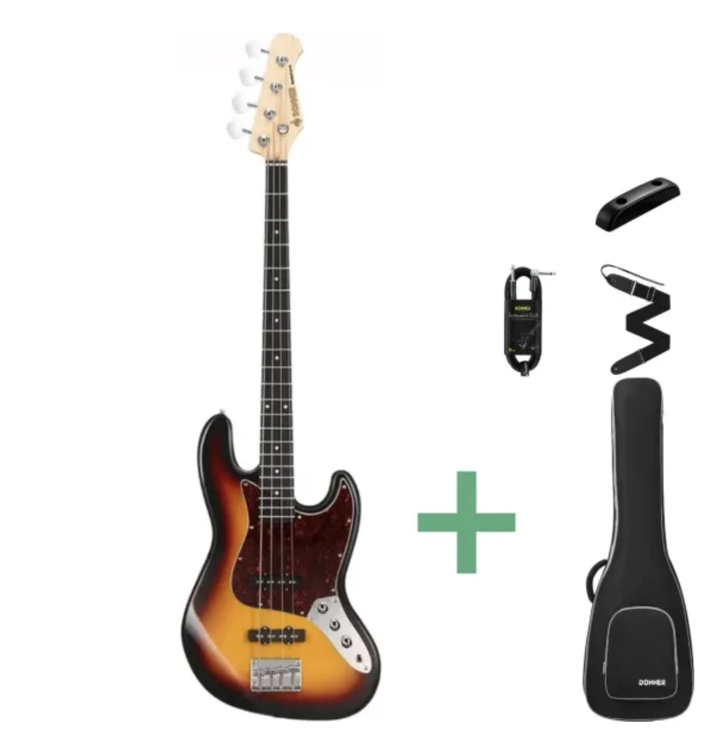 Donner DJB-510D er en 4-strenget el-bas, som er inspireret af den legendariske Jazz Bass fra Fender, men som kan langt mere og andet end ”bare” at spille jazz. Den bliver leveret 100% klargjort til dig, og der medfølger en gigbag, så du kan transportere den sikkert, en skulderrem, et jack-kabel og en finger-støtte, som du kan vælge at montere. Så hvis du har en basforstærker, er du klar til at spille med det samme, den kommer ind ad din dør.