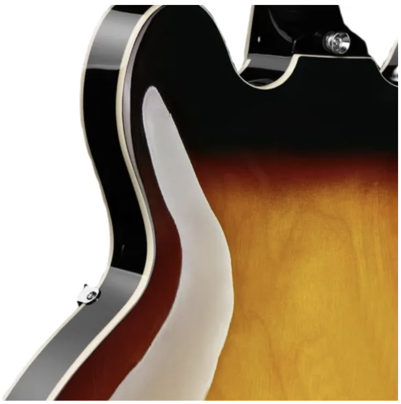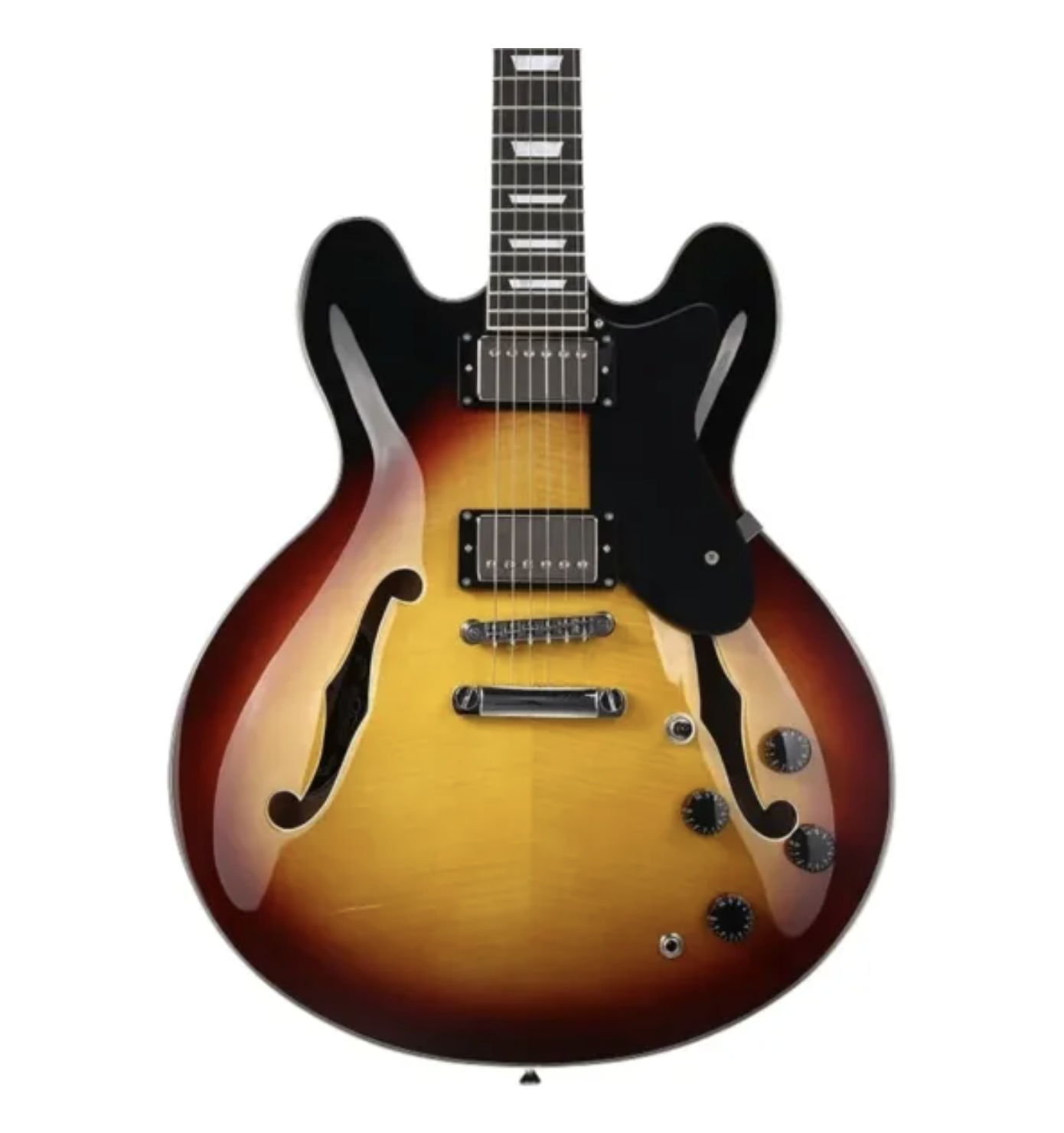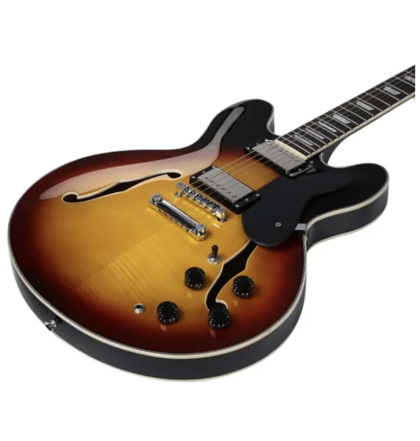 Kroppen er udført i ahorn med flammet ahorn-finér og f-huller, som sammen giver en varm og rund tone med naturlig akustisk resonans. Den semi-hollow konstruktion giver guitaren en levende og dynamisk lyd, der egner sig perfekt til jazz, blues og alt, der kræver musikalitet og følelse.