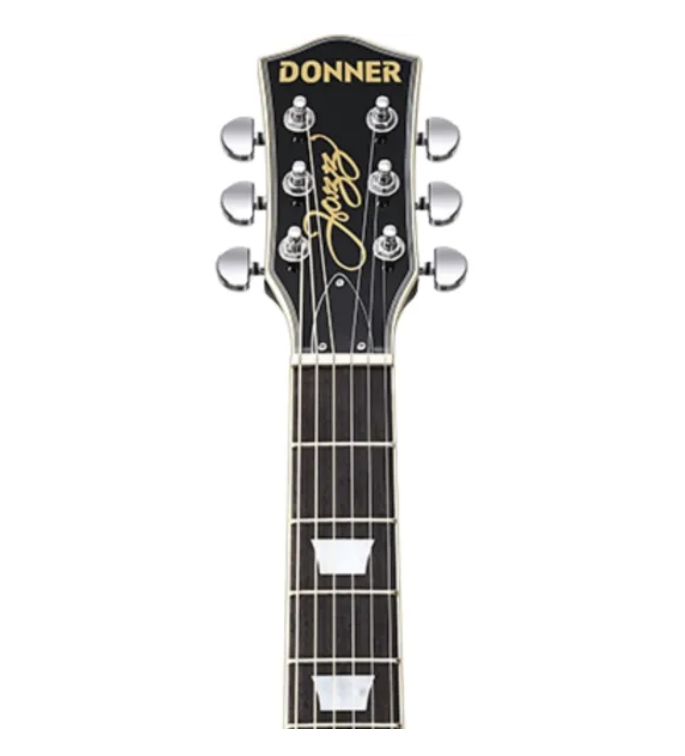 Donner DJP-1000 i sunburst højglans er skabt til dig, der ønsker en elegant, vintageinspireret elguitar med alsidig lyd og stærkt visuelt udtryk. Den sorte finish fremhæver guitarens rene linjer og gør sig både i spotlightet på scenen og i hjemmestudiet. Med sin semi-hollow konstruktion, coil split og komfortable halsprofil er den lige så funktionel, som den er smuk.