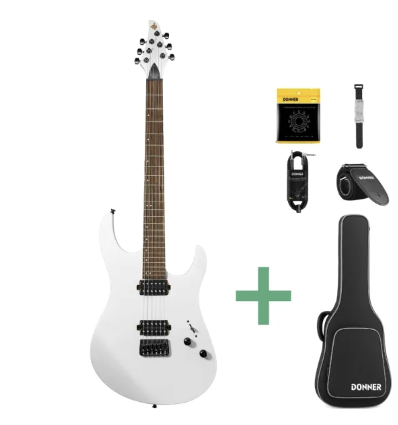 Donner DMT-100 i mat hvid er designet til guitarister, der vil have et kompromisløst udtryk og en guitar, der er klar til tunge riffs og hurtige soli. Med 24 bånd, kraftige high-output humbuckere og et design, der skærer igennem, er DMT-100 både et visuelt statement og et effektivt værktøj til alt fra metal og hard rock til moderne progressiv musik.