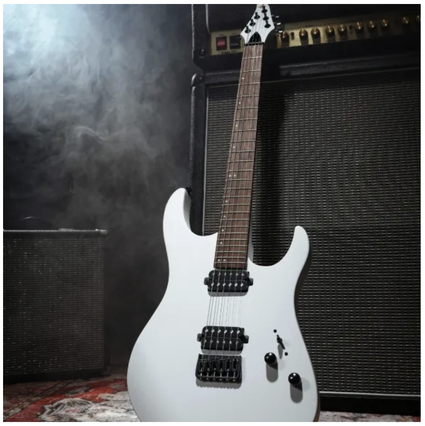 DMT-100 har 24 medium jumbo bånd, hvilket gør den oplagt til solospil og teknisk spil over hele halsen. De to kraftige humbuckere leverer en massiv og fokuseret tone med masser af output – perfekt til forvrængning og tunge riffs. Pickupskifteren er en enkel 3-vejs blade switch, og derudover har du en volumen- og en toneknap til at tilpasse og variere din lyd.