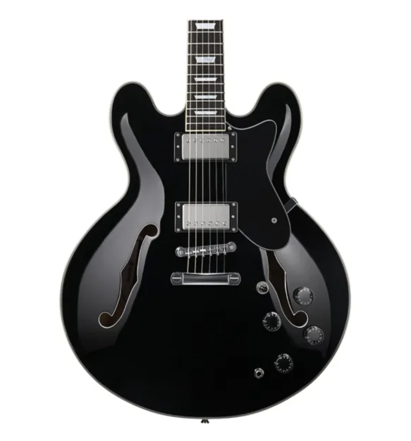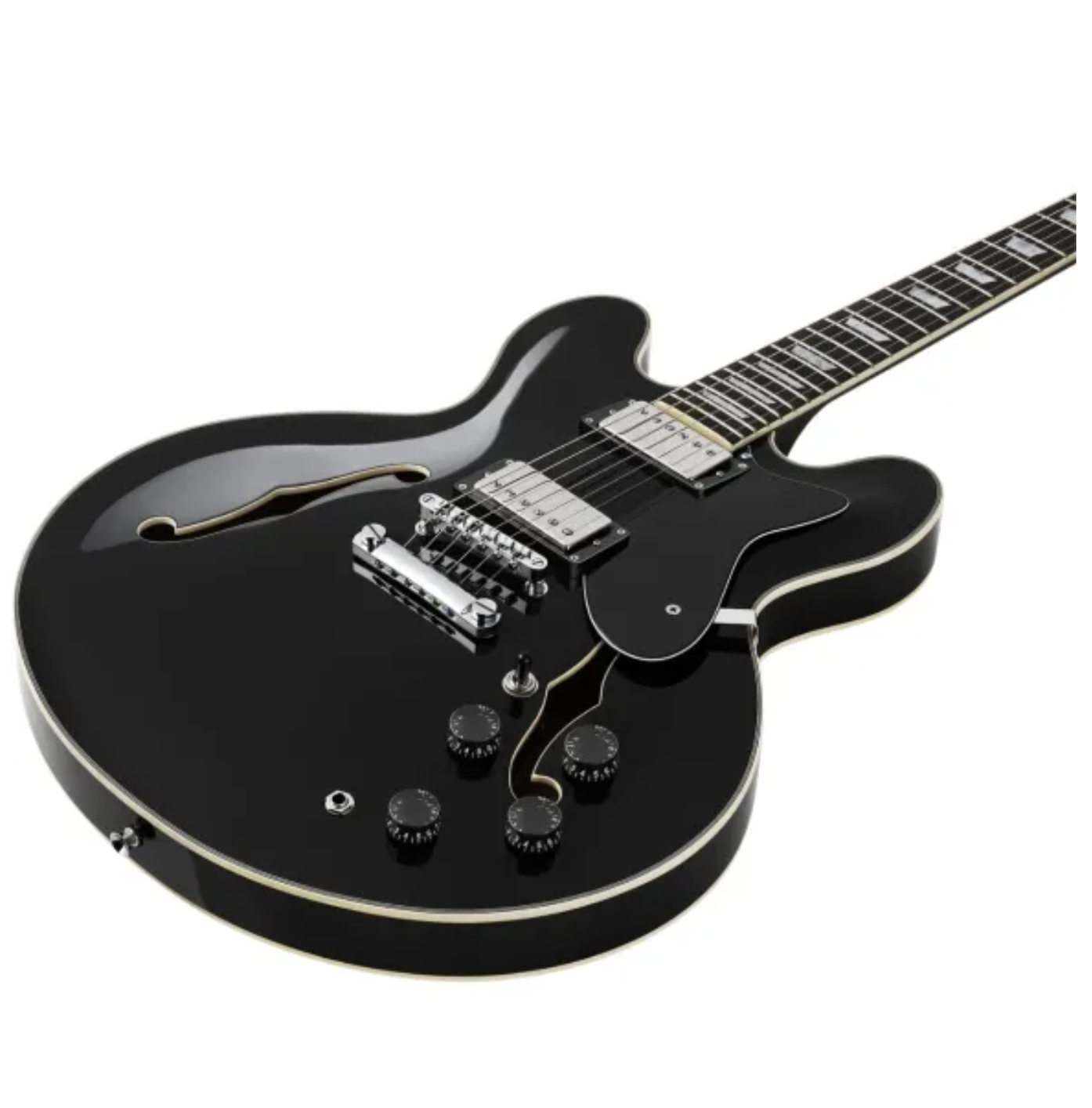 - Semi-hollow jazzkrop med f-huller og sort gloss finish