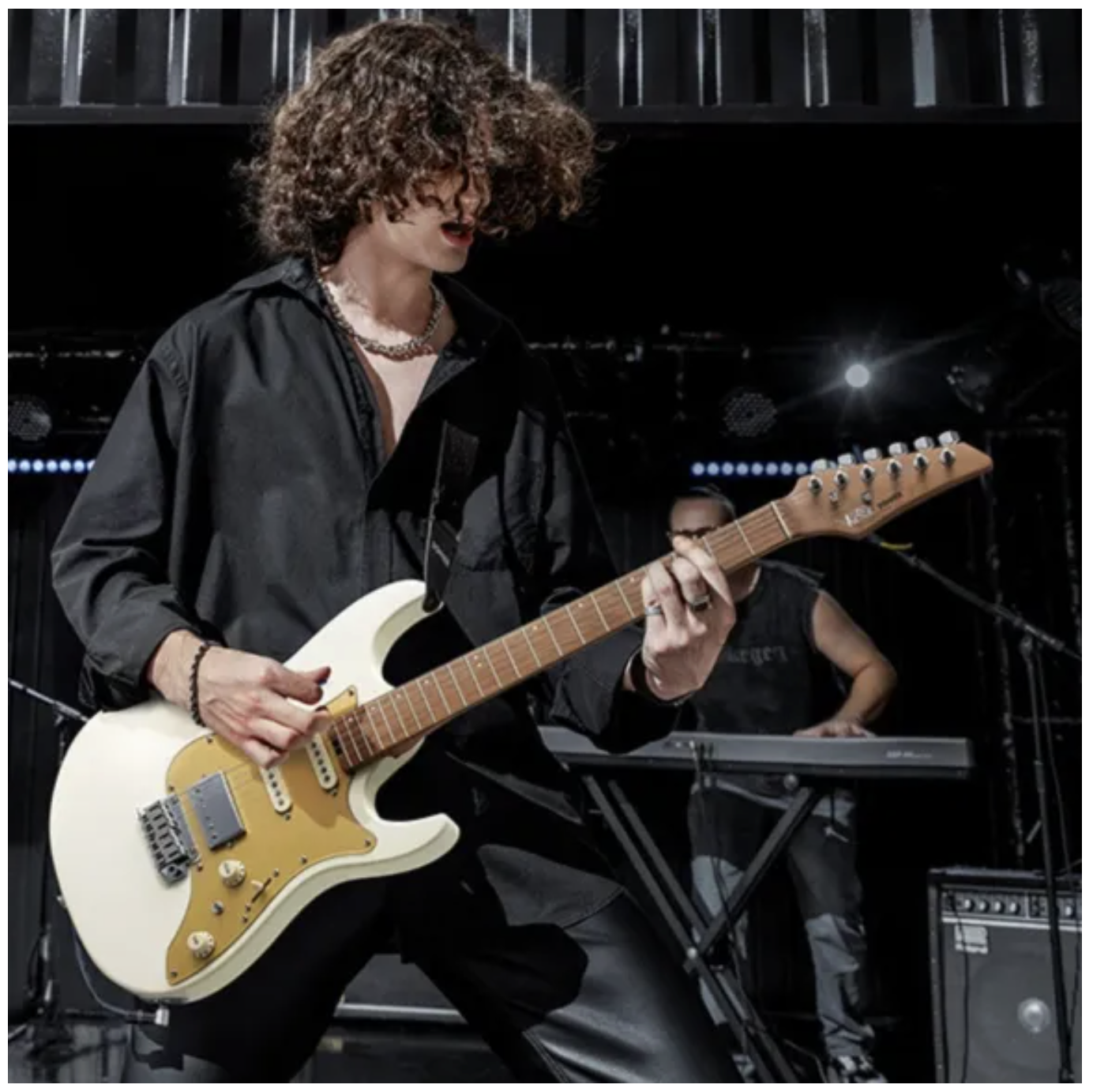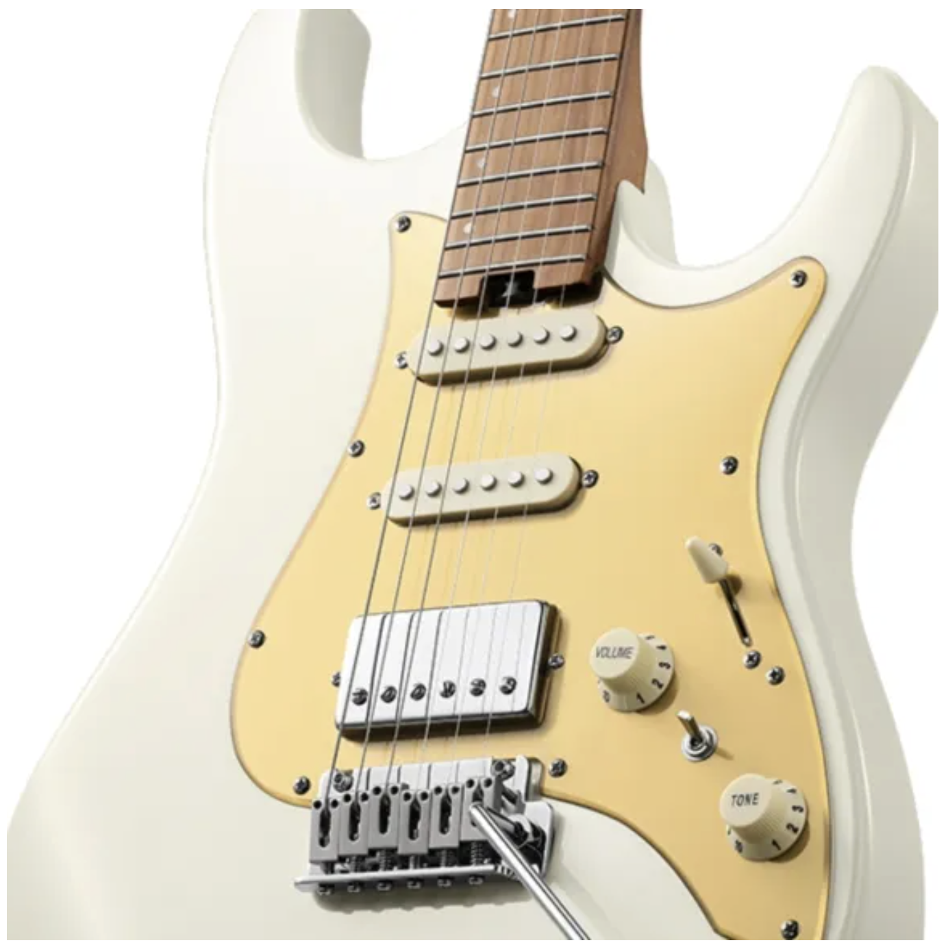 Det 2-punkts tremolosystem med block-saddles giver stabil intonation og god sustain, mens låsetunere med 18:1 gearing sikrer hurtige strengeskift og præcis stemning. Kontrollerne er enkle og funktionelle: 1 volumen, 1 tone, 5-vejs switch og separat coil split – alt, hvad du skal bruge til at forme din lyd.