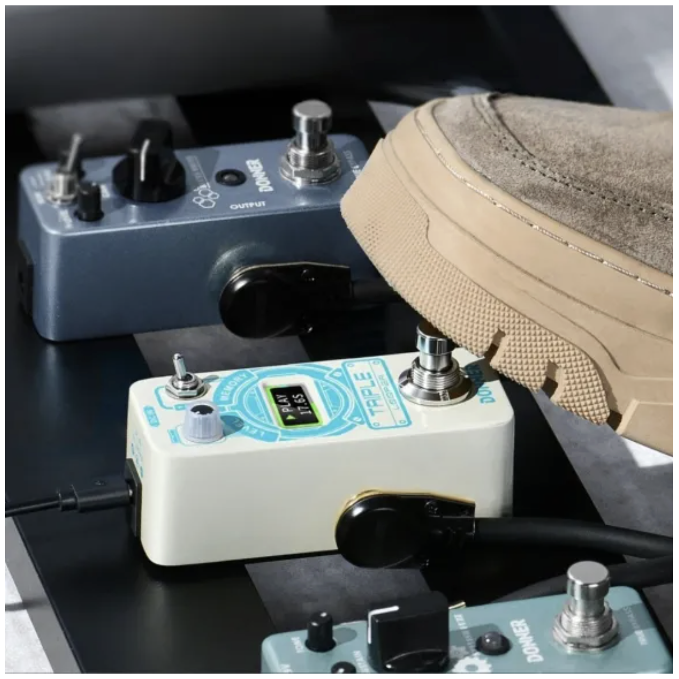 Donner Triple Looper er en brugervenlig og kompakt looperpedal, der gør det let at optage og bygge musikalske lag – uanset om du øver, komponerer eller spiller live. Den er bygget til at levere maksimal funktion i et ultralille format og er ideel til guitarister, der vil have en simpel og effektiv looper uden dikkedarer.