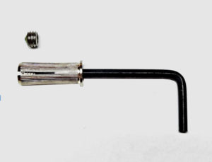 Even with such a simple component as drive-in bushings, the wheel can certainly be reinvented. Inside this bushing is a grub screw that spreads the bushing outwards when it is screwed in. This ensures that the bushing sits bomb-proof in the wood and ensures optimum transmission of the vibrations. It is best suited for the new installation of vibrato systems, which are mounted in the bushings of a tailpiece (e.g. Les Trem II). The bushing is also bomb-proof in holes that have been enlarged by heavy or long term tremolo use and will never slip out of the holes.