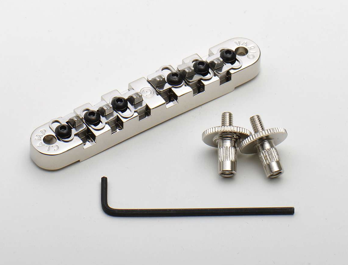 To adjust the octave positions of the saddles, loosen the locking screws from above, and each saddle can be moved to its optimal position. Another feature for playing comfort: the string spacing is 53mm (10.6mm string to string), 1mm more than conventional Tunamatics.