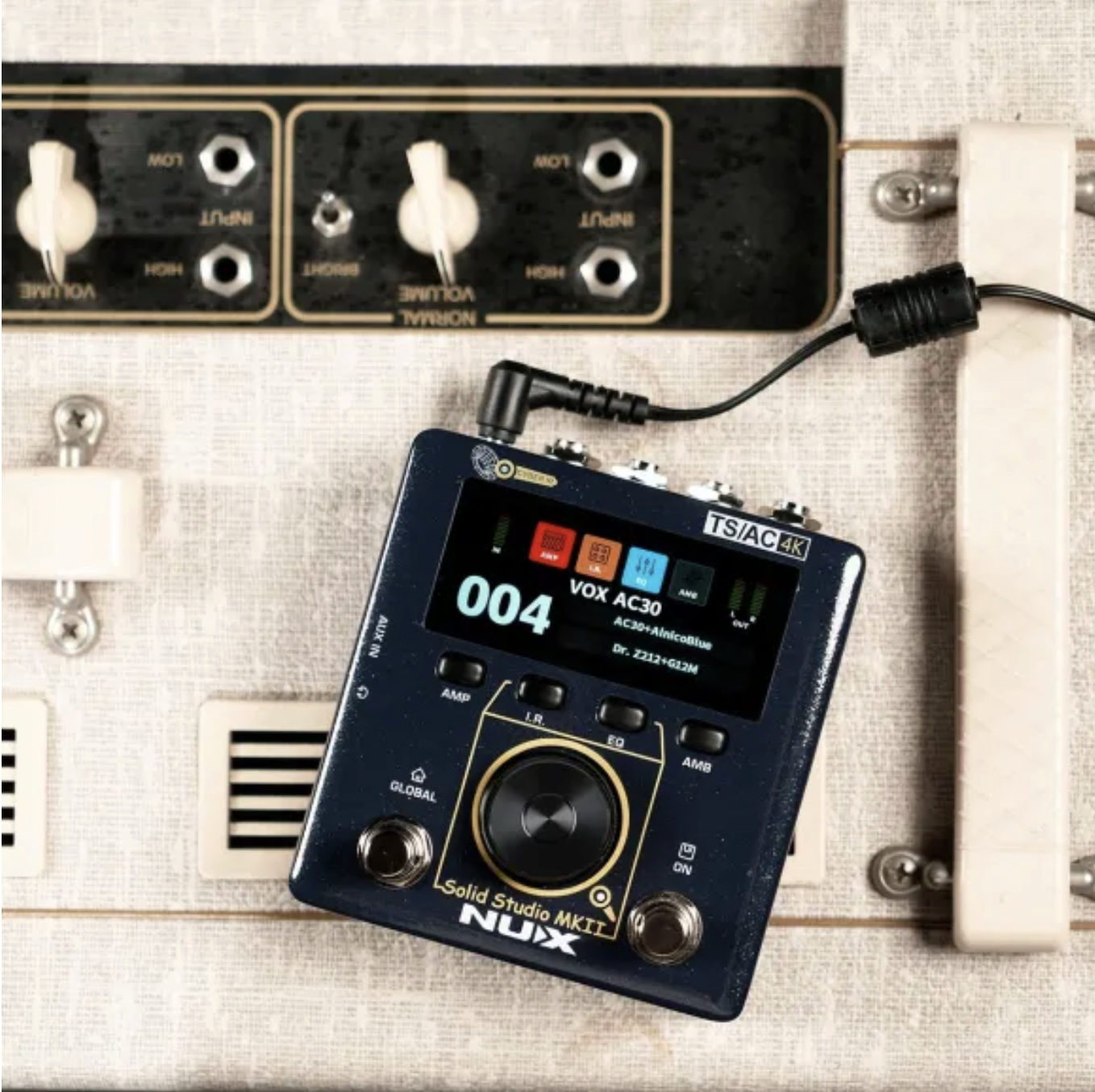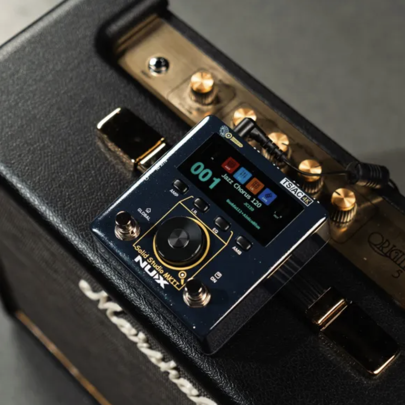 Solid Studio MKII simulerer både preamp og power amp med NUX’ avancerede TSAC‑4K white-box algoritme. Resultatet er en respons, der føles som et ægte rørforstærkersetup – uden kunstig kompression og med et dynamisk headroom på hele 110 dB. Den ultra-lave latenstid (ned til 0,85 ms) gør den ideel til både scene og studie.