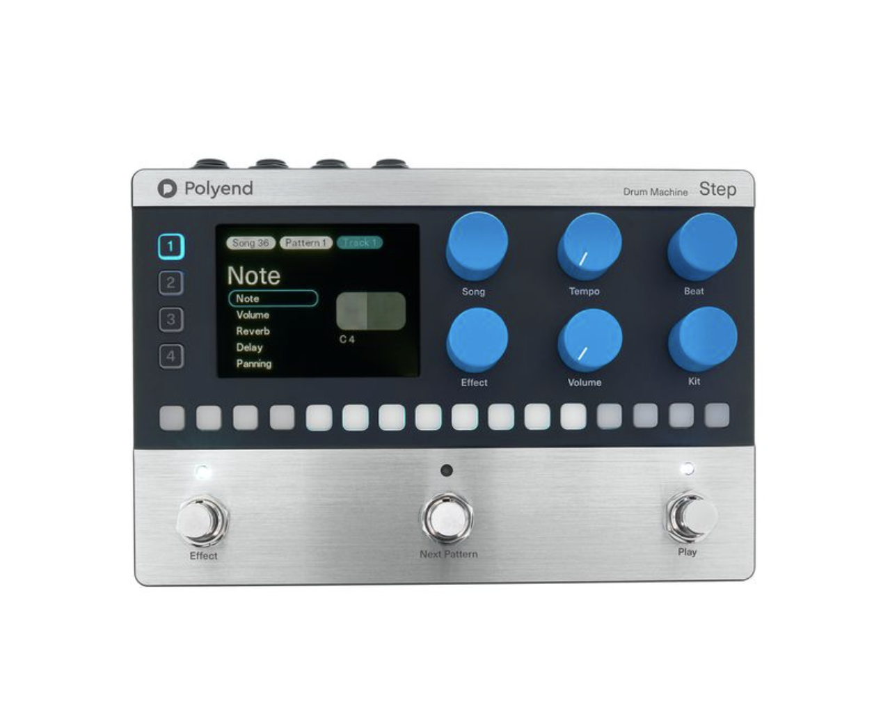 - Step sequencer med 16 trin og 16 mønstre pr. spor