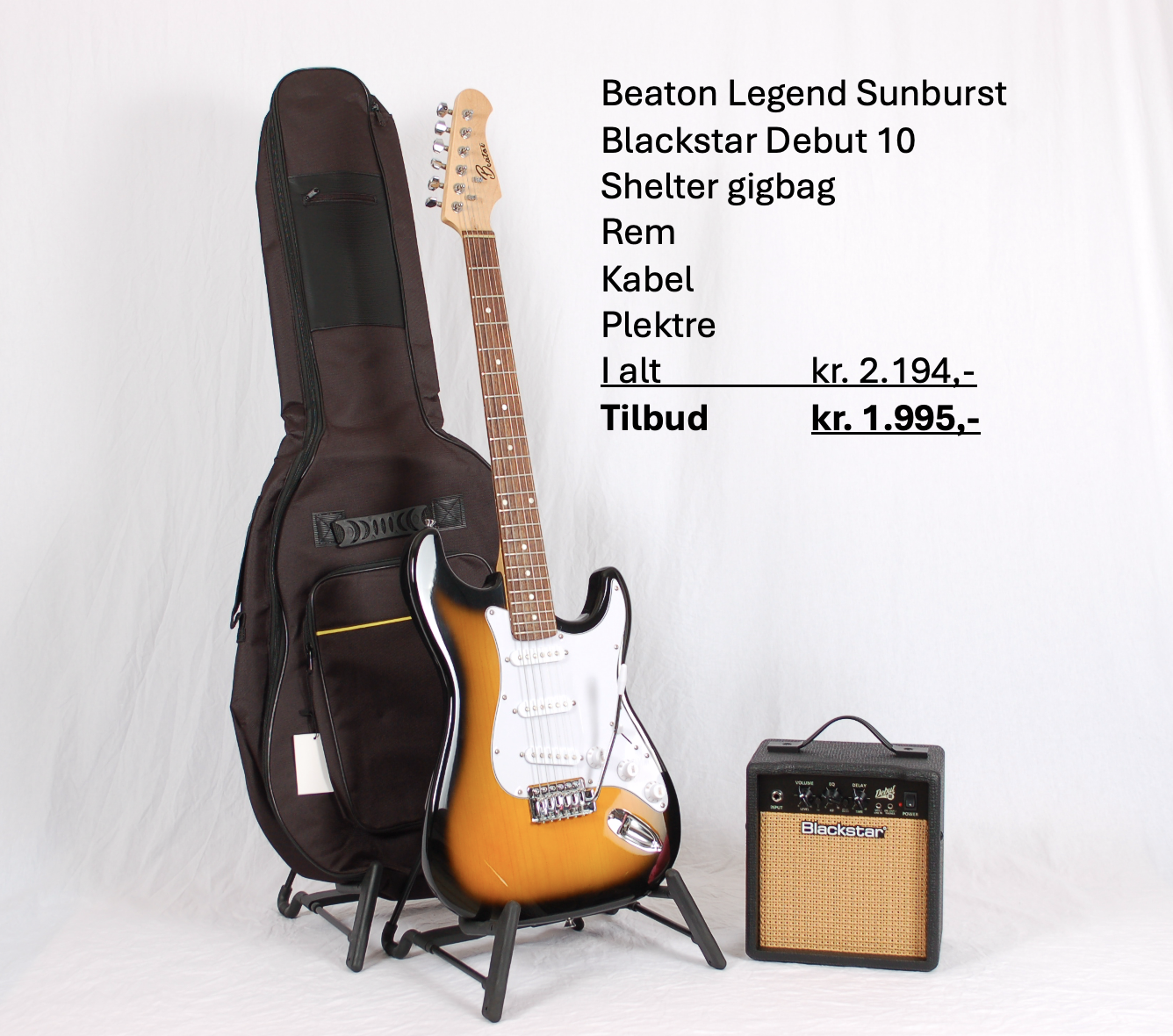 Her har jeg samlet et tjekket sæt med en Beaton Legend Strat-style guitar med en Blackstar Debut 10E;